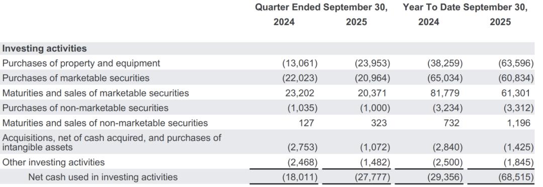 支出方面,Q3的资本支出达239.5亿美元,全年预计91-93亿美元,与去年相比增长显著,重点投资AI算力基础设施。