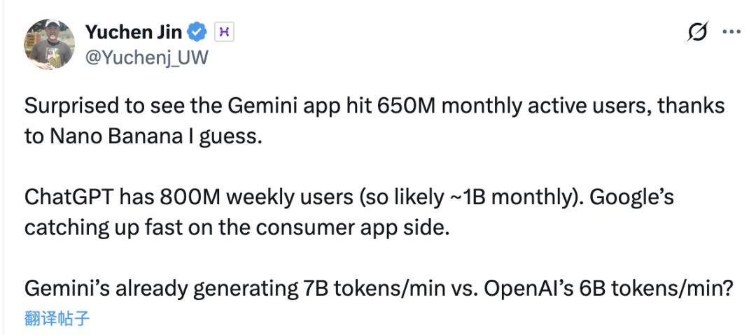 Hyperbolic Labs的联创兼CTO Yuchen Jin分析,Nano Banana在其中起到了重要的作用。