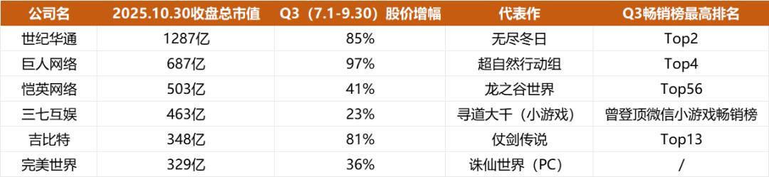 从整体情况来看,在外部经济环境压力减缓、暑期档带动用户活跃等因素影响下,Q3期间不少游戏公司实现了稳健增长。