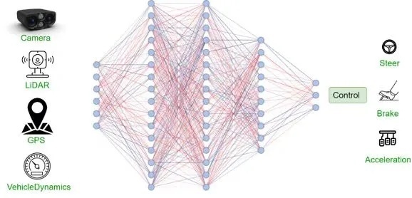 但端到端架构,就可以确保决策和控制端依然能基于丰富的信息,再加上神经网络和数据驱动从大量人类驾驶行为中学习到“经验”,从而做出正确、安全和有效的驾驶行为。