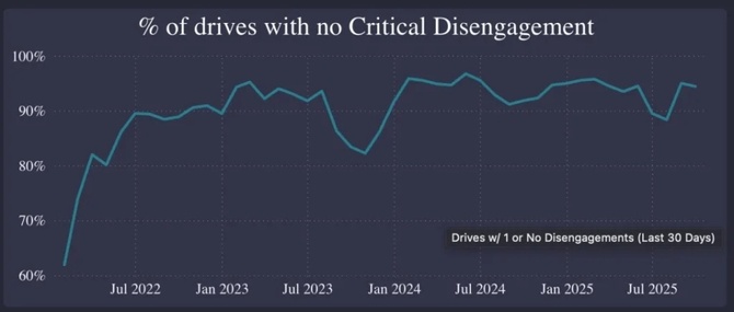 在安德烈看来,自动驾驶的迭代好比是无限接近100%的过程,在此之前就是无数个9的积累过程,按照他对Electrek回忆道,他曾领导特斯拉自动驾驶经历了两到三个“9”的迭代,确实显著减少了驾驶员接管的干预,但此后这样的进步就不明显了。