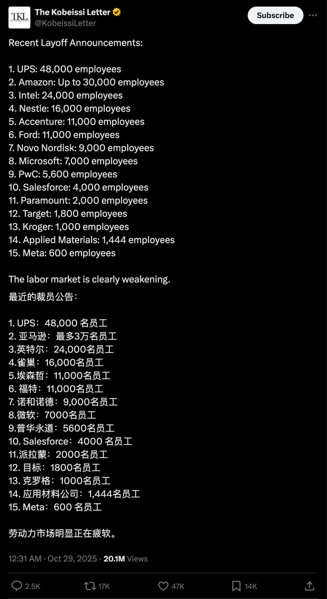 图片来源: https://x.com/KobeissiLetter/status/1983209896721236139