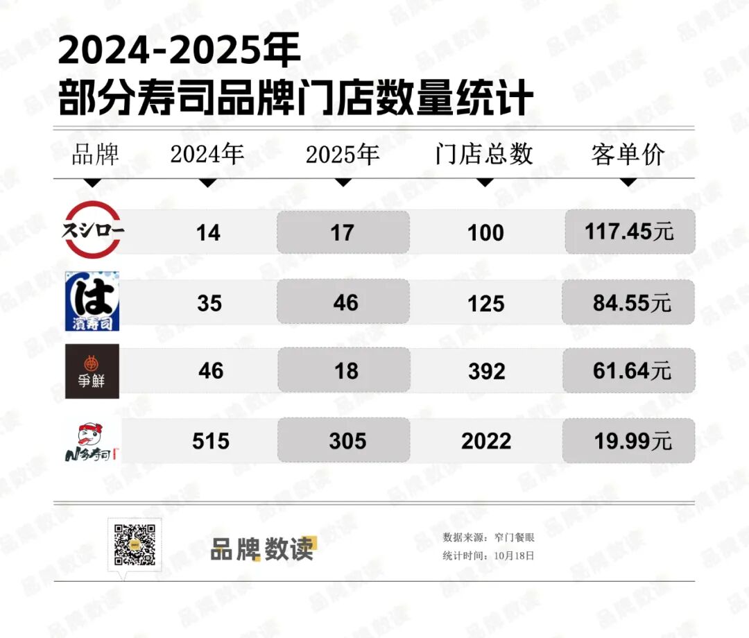 然而,市场并非普涨。同为平价回转寿司的争鲜,其2025年的新开店数仅为18家,远低于2024年的46家。而门店总数高达2022家的N多寿司,2025年新开店305家,也大幅低于2024年的515家。