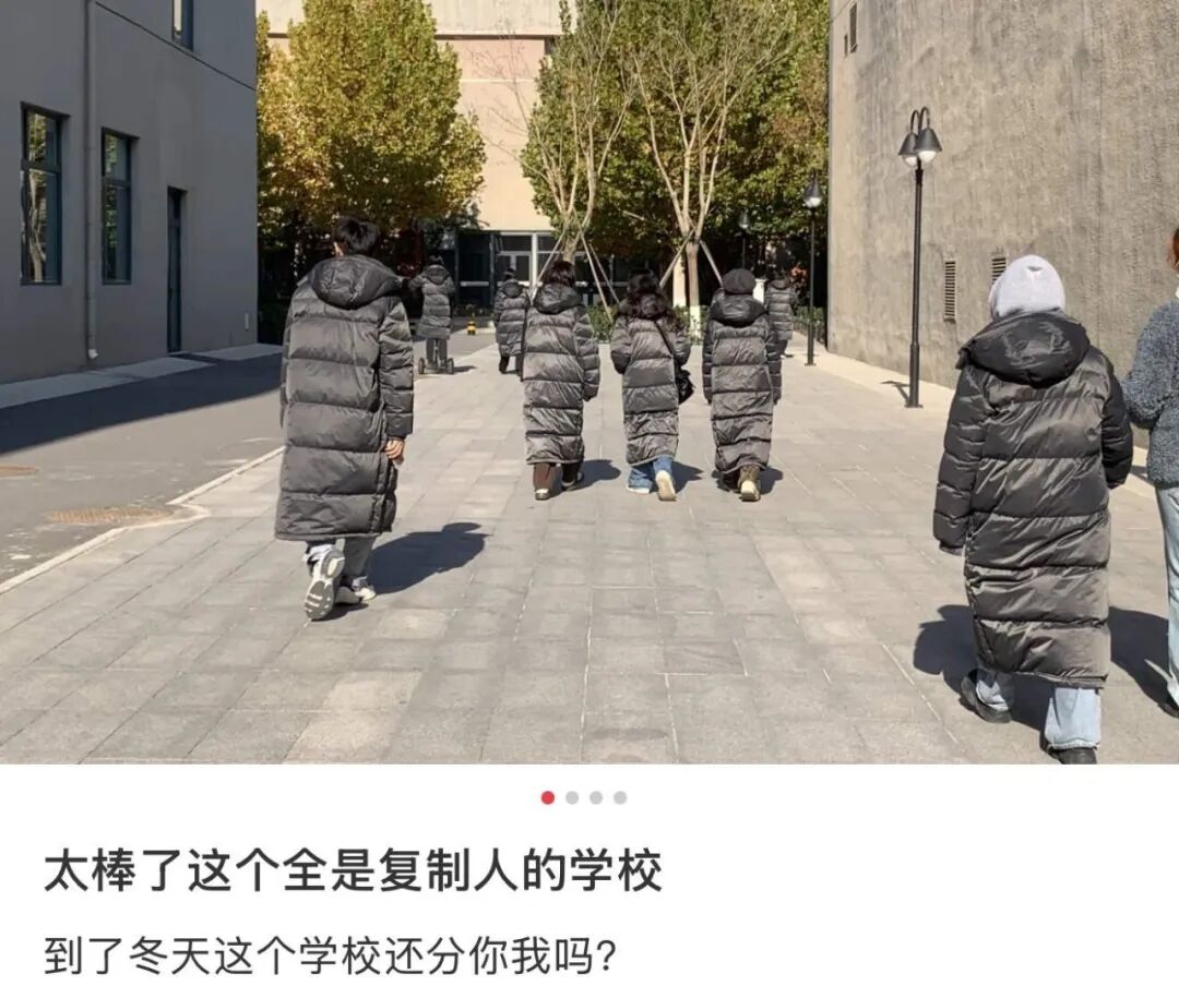 要不怎么中戏、中传、北影的冬季校服,都是清一色的黑长羽绒服,不少大厂厂服也被黑色羽绒服承包?