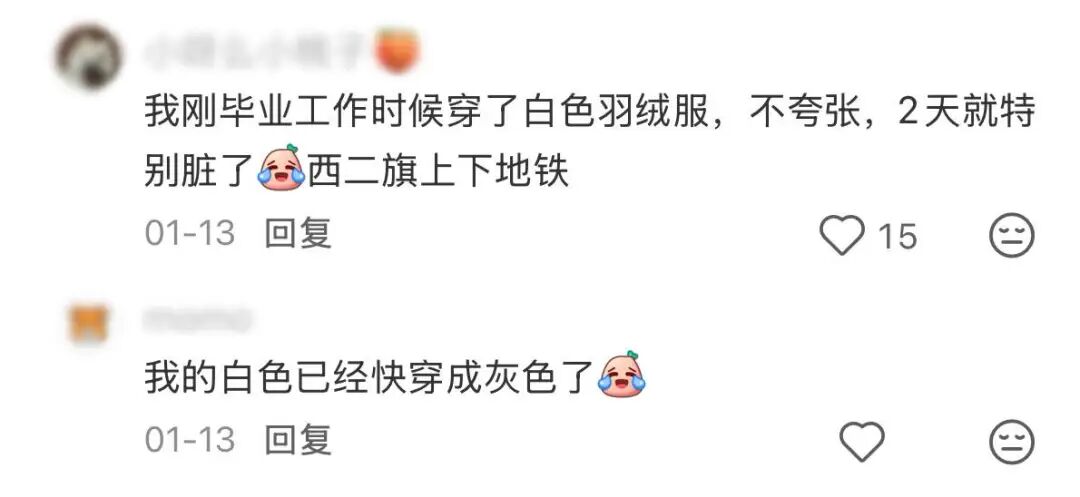 “我穿了三十多年黑羽绒服,终于咬咬牙买了个白色羽绒服,送几次干洗店够买一件新的。”