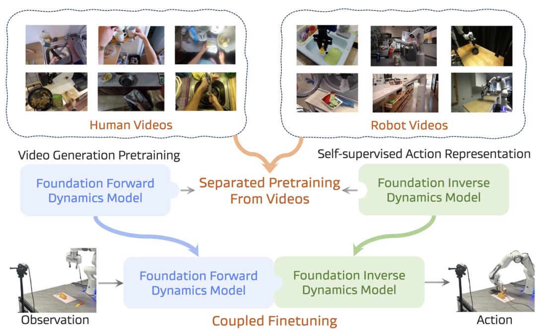 - 从视频生成大模型(如NVIDIA的Cosmos)出发,微调使其具备动作生成能力