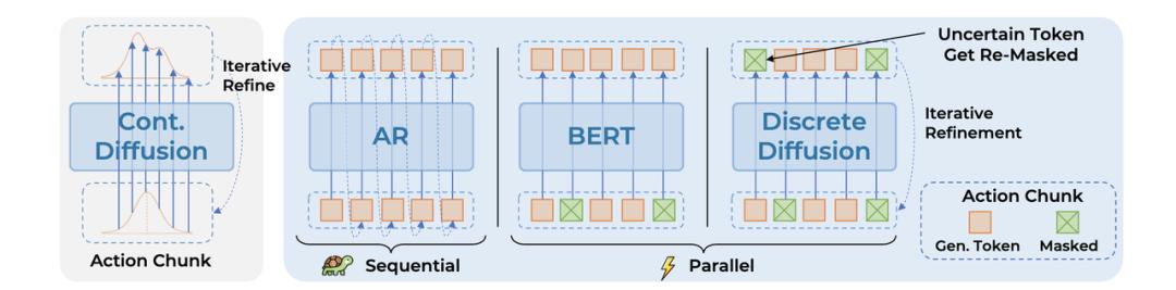 如果说今年VLA架构有什么新风向,当属离散扩散模型(Discrete Diffusion)。