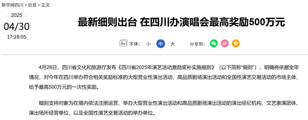 各地方也都看明白了,现在纷纷为演唱会出台奖补政策。