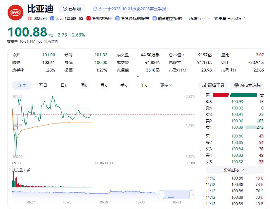 第三季度,比亚迪的研发费用为141.52亿元,同比增长3.31%。