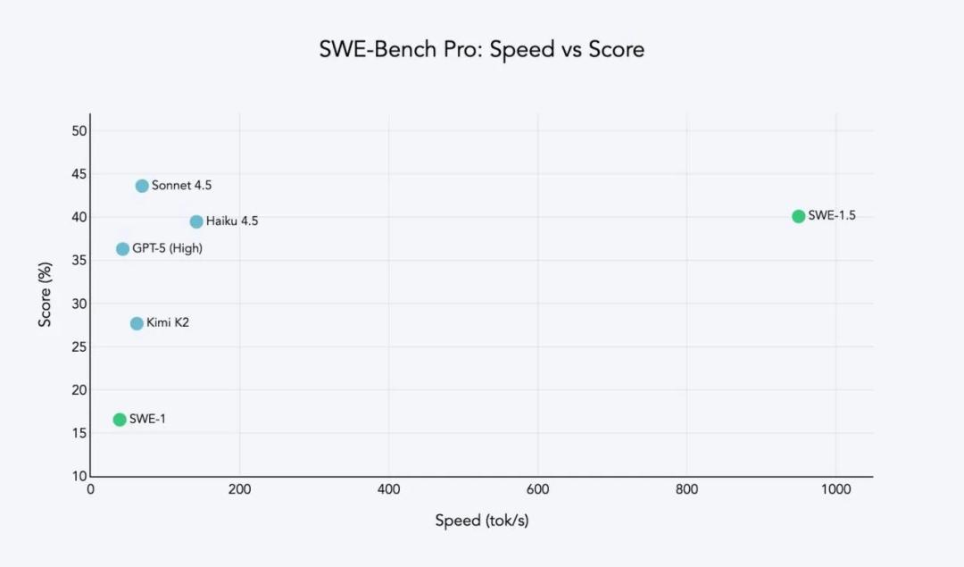 在 Scale AI 开发的 SWE-Bench Pro 基准测试中,Cognition 的 SWE-1.5 模型取得了 40.08% 的良好成绩,仅次于 Claude 的 Sonnet 4.5(该模型得分 43.60%)。此外,SWE-1.5 致力于提供端到端的用户体验。据透露,该模型在高速运行状态下实现了接近当前最佳水平(near-SOTA)的编码性能。