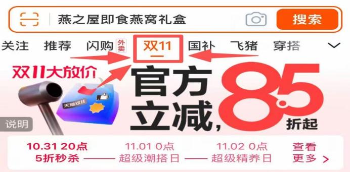 为了迎接这次双11,淘宝已经将顶部的Tab为双11新增了一级独立的流量入口,更多的消费可以直接点击进入,这也给商家带去了更多的流量和曝光度。