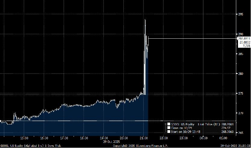 在美国东部时间10月29日谷歌母公司Alphabet发布2025年三季度财报后,市场对远超之前预期的业绩反馈热烈。Alphabet的股价受此激励,盘后上涨逾7%。
