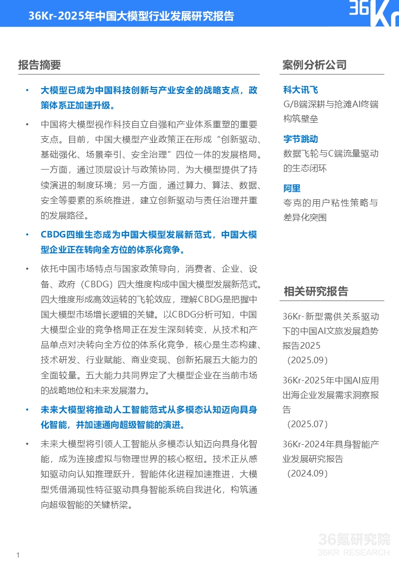 36氪研究院 | 2025年中国大模型行业发展研究报告