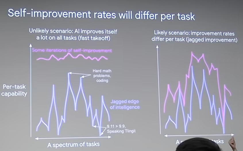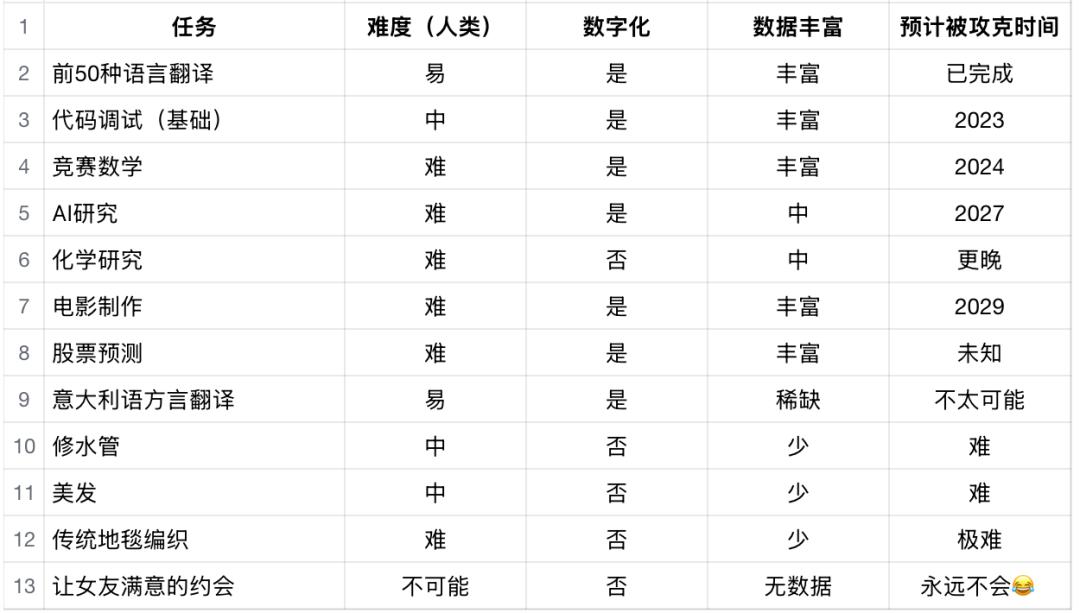 智能的边界是锯齿状的。各任务发展速率不同,不会出现瞬间的超智能崛起。