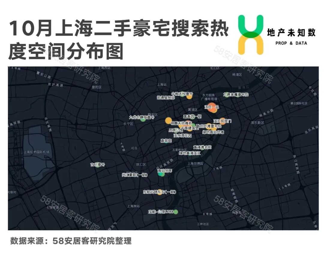 值得注意的是,徐汇滨江、前滩等新兴区域豪宅的搜索热度有待提升 。