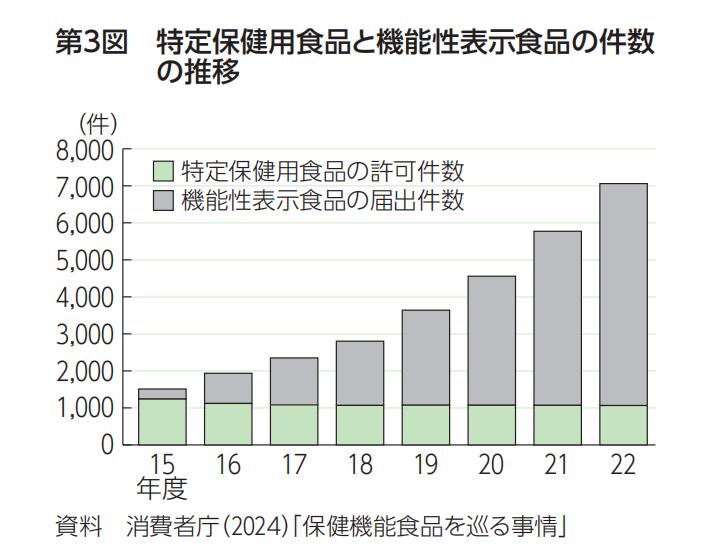 这项革命性的制度迅速成为激活市场的强大催化剂。自2017年起,功能性标示食品的申报数量首次超过“特保”许可数量,且差距逐年扩大。据估算,2023年其国内市场规模已达约6000亿日元。