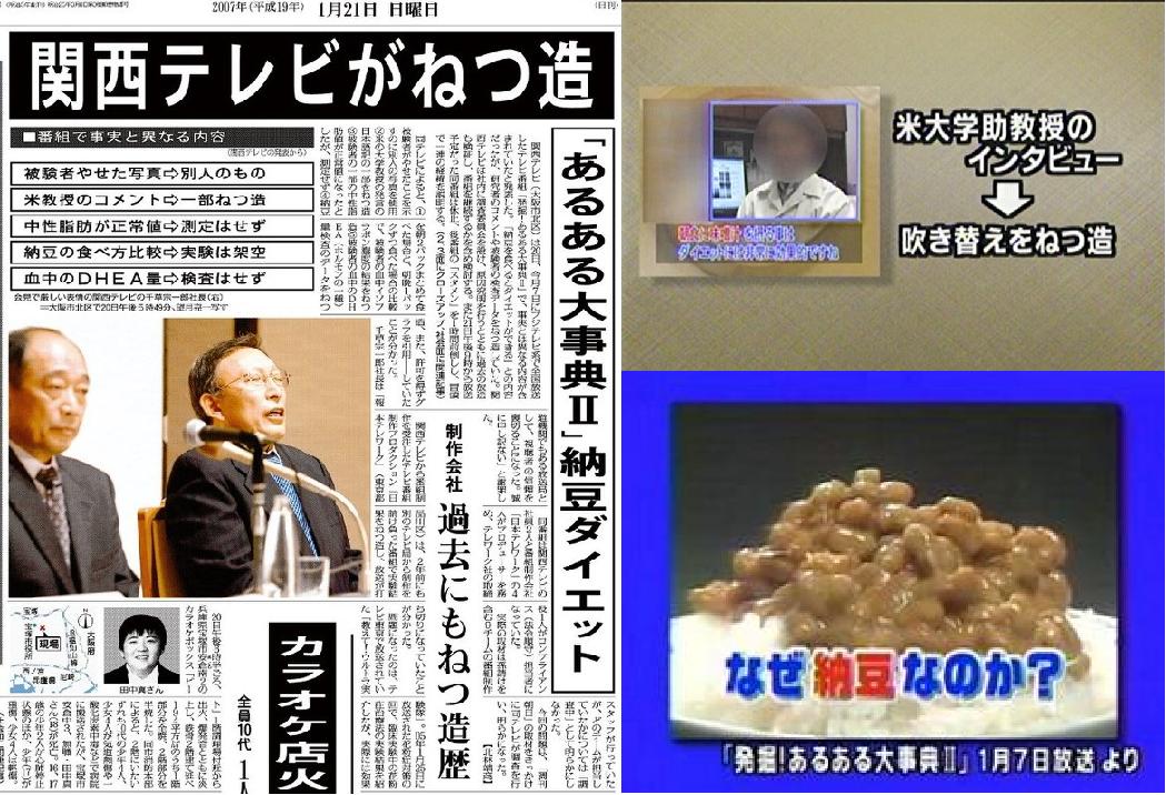 2007年,当时最具影响力的健康节目《发掘!あるある大事典》被曝出“纳豆减肥”特辑存在严重数据造假。调查发现,该节目不仅伪造血液检测数据、使用无关人员的对比照片,甚至篡改专家评论的翻译。这一捏造事件的曝光,彻底摧毁了公众对健康资讯节目的信任,媒体作为市场推手的黄金时代戛然而止。