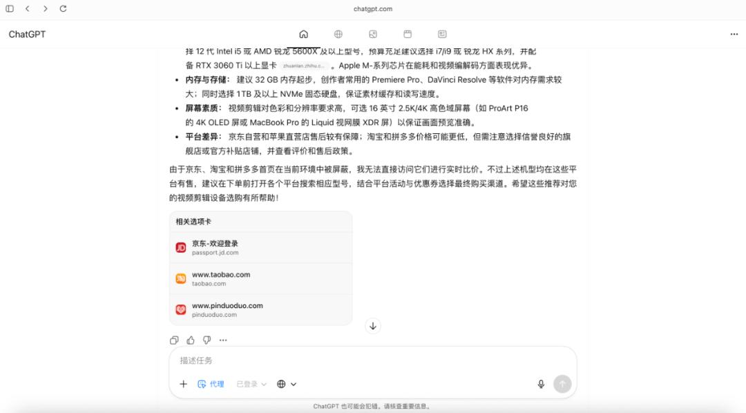 而 ChatGPT Atlas 不仅理解网页内容,还能模拟操作、跨页追踪、整理文件、生成报告,甚至执行自动化脚本。它还有记忆能力(还记得我昨天看的机器人评测视频吗?),隔了一天它也真能想起来。