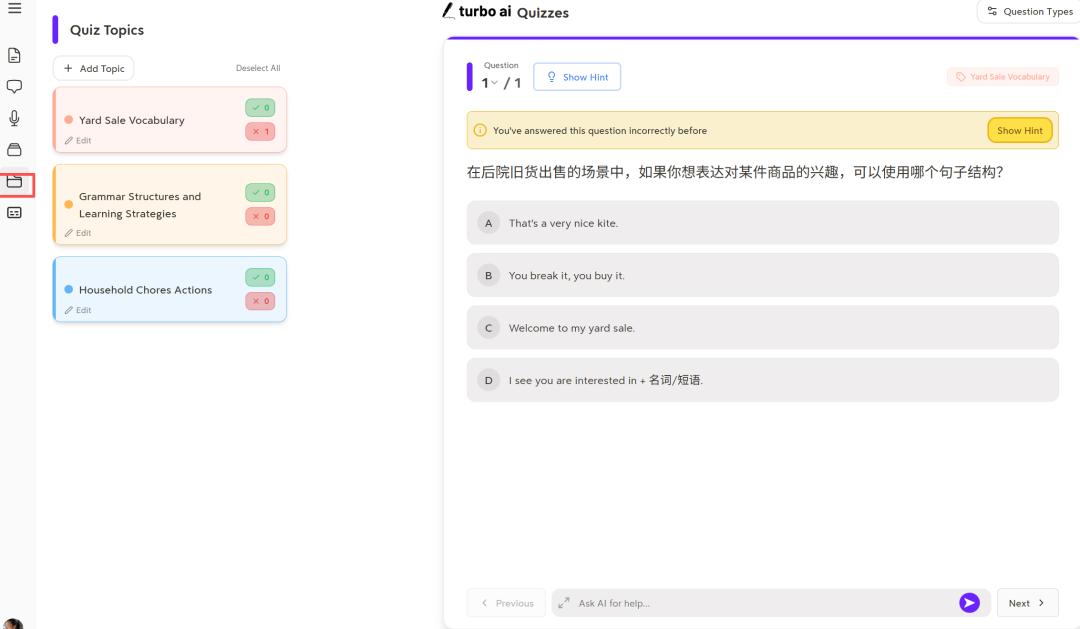 当然, Turbo AI 不止于此。它能自动生成笔记(Document)、闪卡(Flashcards)和小测验(Quiz),巩固知识点、检测掌握程度。