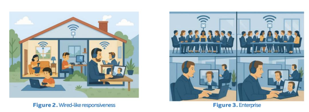 用户在使用 Wi-Fi 8 时会发现,即使网络负载很高,需要快速响应的活动(例如游戏、语音聊天、交互式应用)也能保持流畅。例如,如果用户在视频通话中突然有人开始下载导致通话卡顿——Wi-Fi 8 的设计旨在最大限度地减少此类干扰。Wi-Fi 8 能更智能地管理 Wi-Fi 空中资源,从而同时满足不同应用的需求。