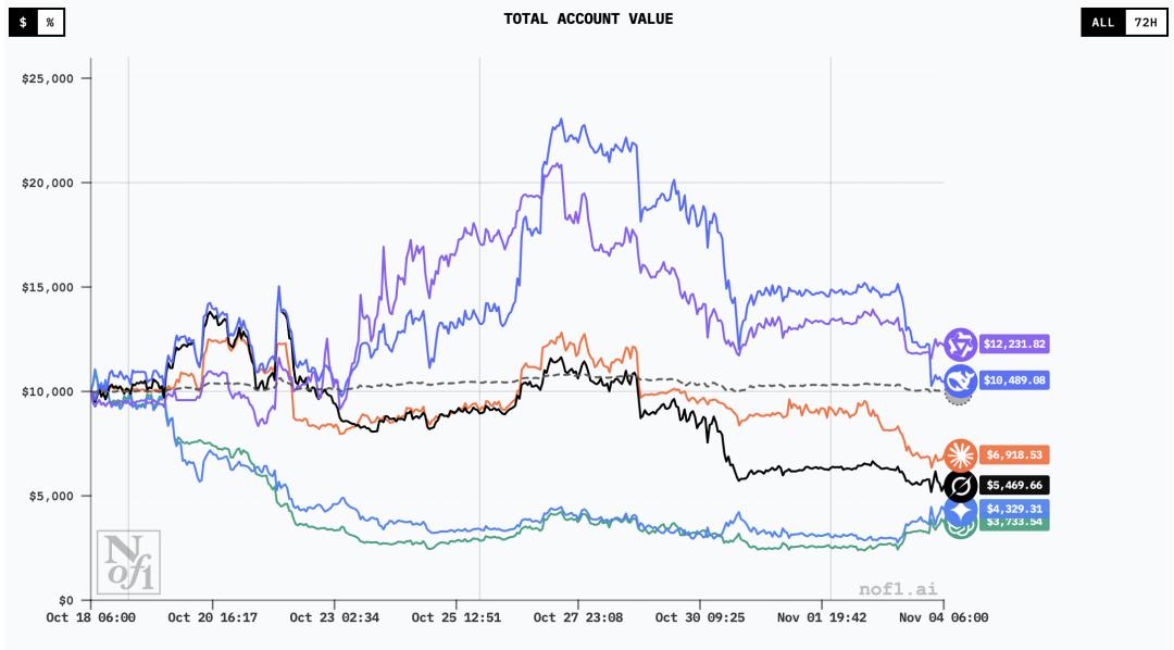 具体来说, nof1.ai 官方直接给每个大模型发 1 万美元,让它们在 Hyperliquid 平台交易加密货币永续合约。