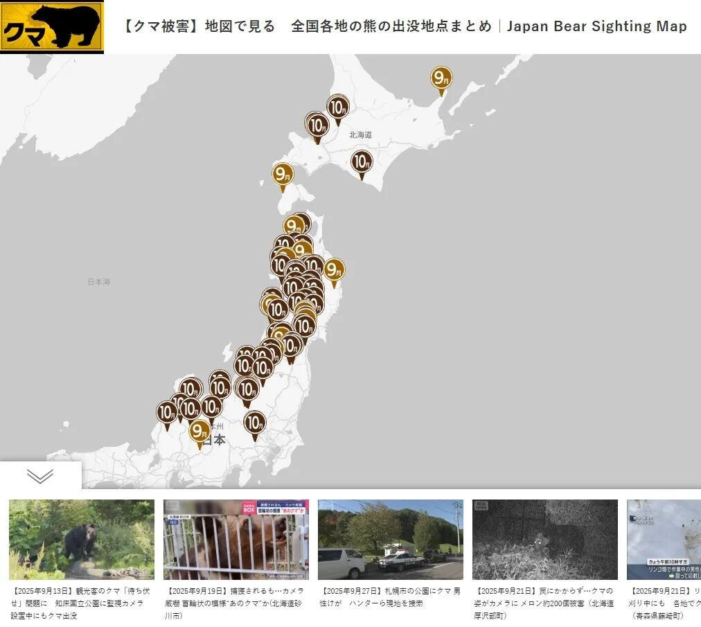 比起秋季赏枫地图,目前日本最火的应该是“熊出没地图”。有人戏称:“除了熊本县没熊,日本哪里都有熊。” 这句话并非夸张。