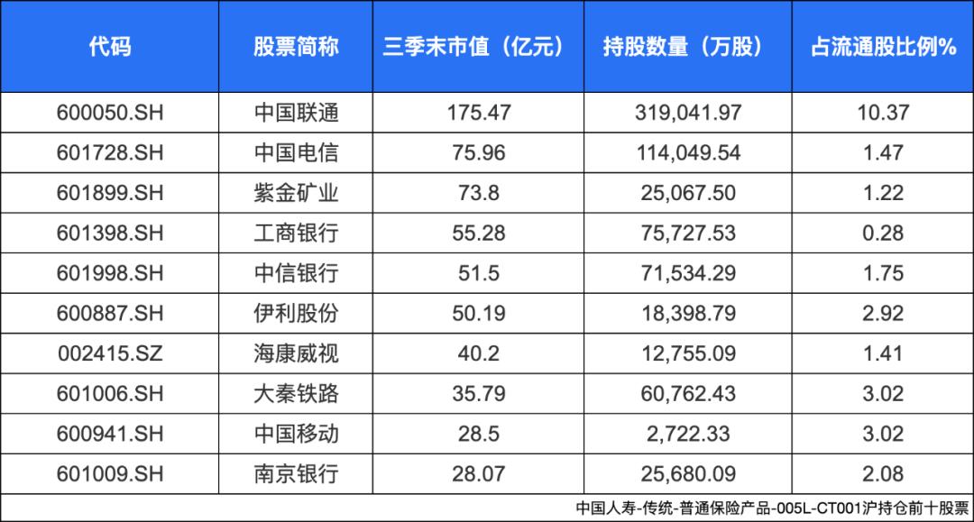 Wind数据显示,截至三季度末,该账户出现在136只股票的十大股东之中,期末参考市值合计达到1255.65亿元。如此庞大的持股规模,可以说是中国人寿股票资产的基石账户。