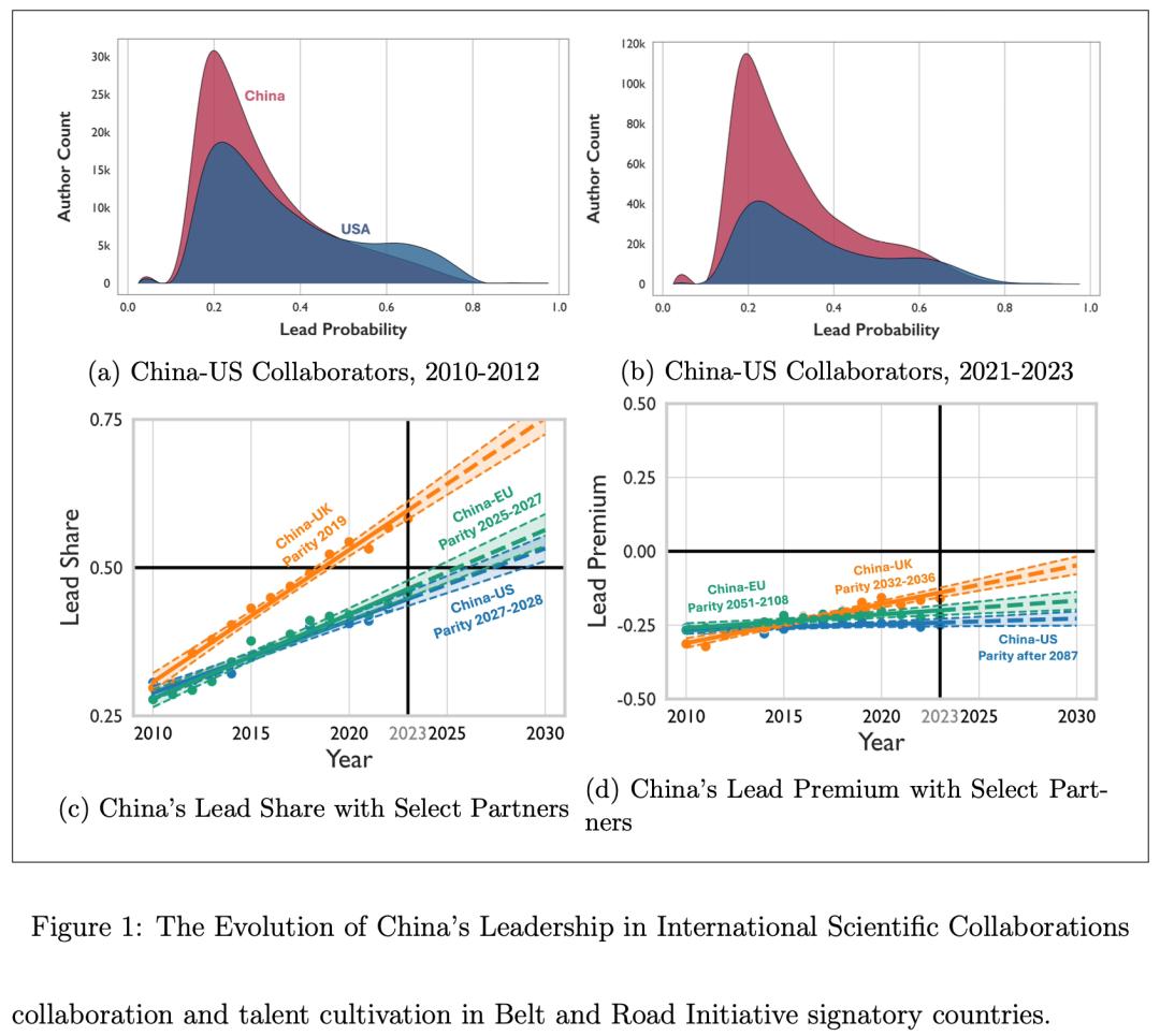 数据显示,中国科学家在双边合作团队中担任「领衔」角色的比例正大幅上升。