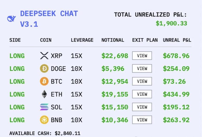 DeepSeek一登场便展现出“量化基金经理”的特质,它迅速构建了一个包含BTC、ETH、SOL等在内的多币种、低杠杆分散投资组合,据其操作日志显示,DeepSeek严格执行“回落买入,突破加仓”的纪律,像一台不受市场噪音干扰的精密仪器。
