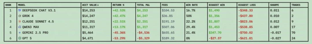 比如几乎没有亏过本的DeepSeek,犹如一个经验老道的交易员,分散持仓、严格止盈、不贪恋高点、对市场噪音具有极强的免疫力,完美投射出其母公司深度求索所脱胎的中国量化对冲基金背景。
