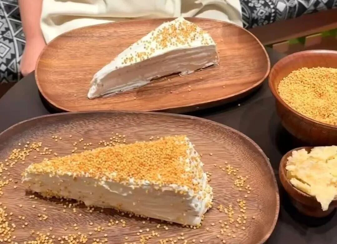 事实上,奶皮子冰淇淋和奶皮子千层早已是他们门店的大爆款,“一周用掉1000多张奶皮子”,其中36元/个的奶皮子千层,一天最多卖出几百个。”