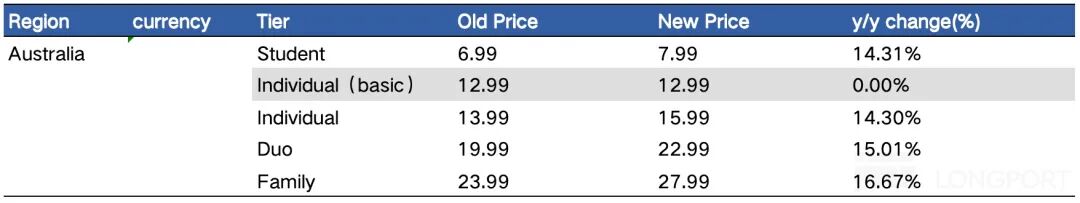 而针对澳大利亚的特殊涨价,很可能是明年北美等核心地区的涨价方案,主要目的是覆盖音频内容成本、小幅削弱版税综合分成占比。