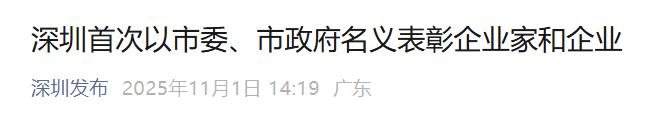 最近,深圳对企业家的重视再次升级,在今年的“企业家日”上,深圳首次以市委、市政府名义表彰企业家和企业,授予60位企业高管或创始人“深圳市非公有制经济人士优秀中国特色社会主义事业建设者”称号,授予30家企业“深圳市光彩事业贡献奖”。