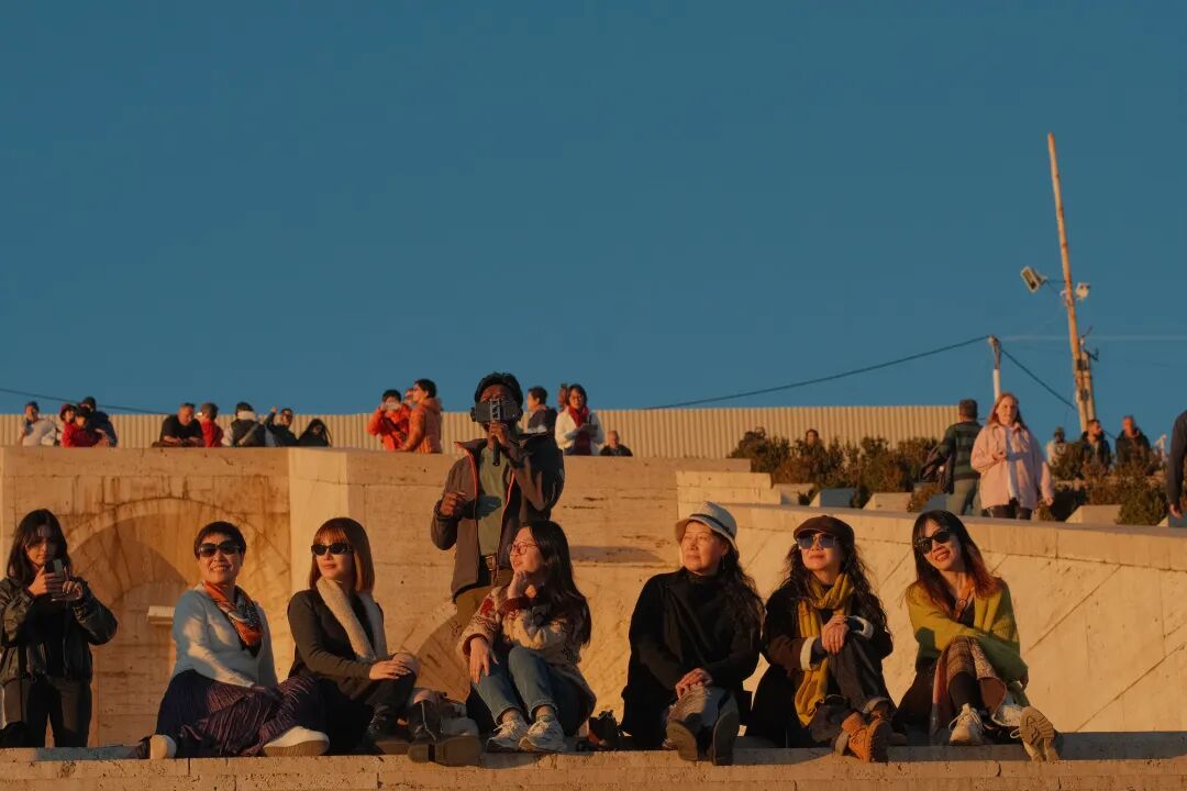 日落时分,我们登上后面的大阶梯,这座苏联时期的地标建筑厚实而充满韵味,每一层都有一个艺术中心。