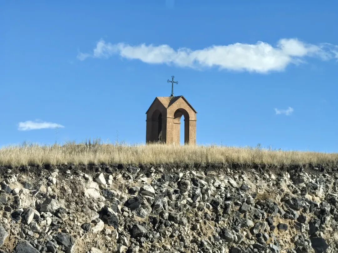 车辆行驶在一望无际的平原,沿路可以看见漂亮的小教堂,这是通往首都埃里温的道路。