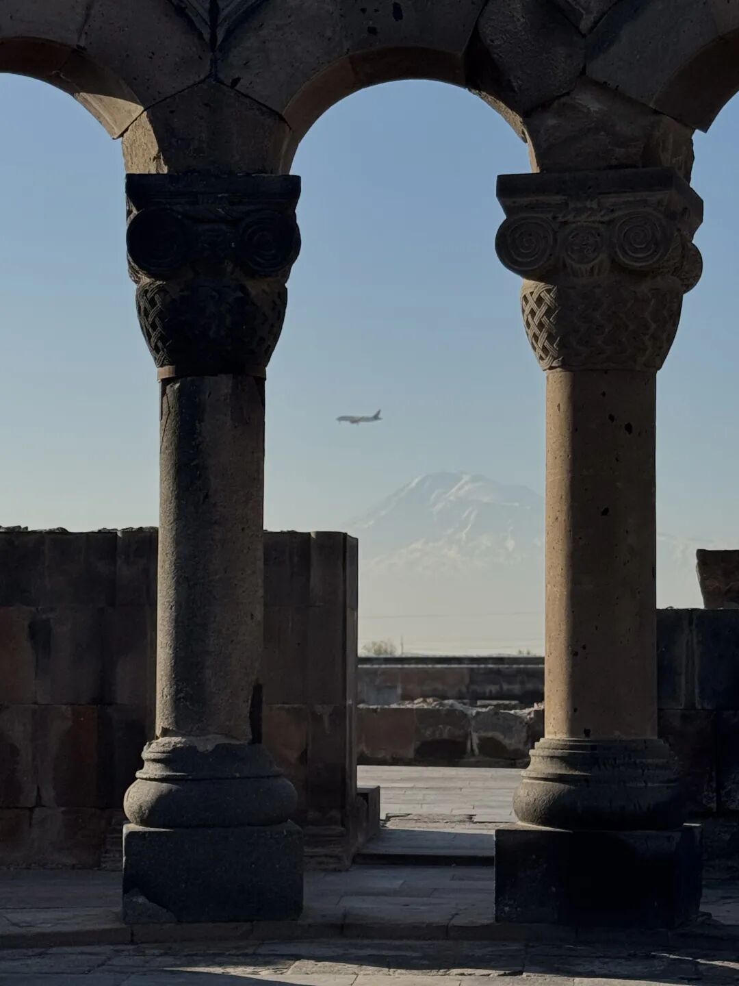 在早上九点半进入了被称为亚美尼亚圆明园的兹瓦尔特诺茨考古遗址,飞机恰好飞过人类文明的废墟之上。