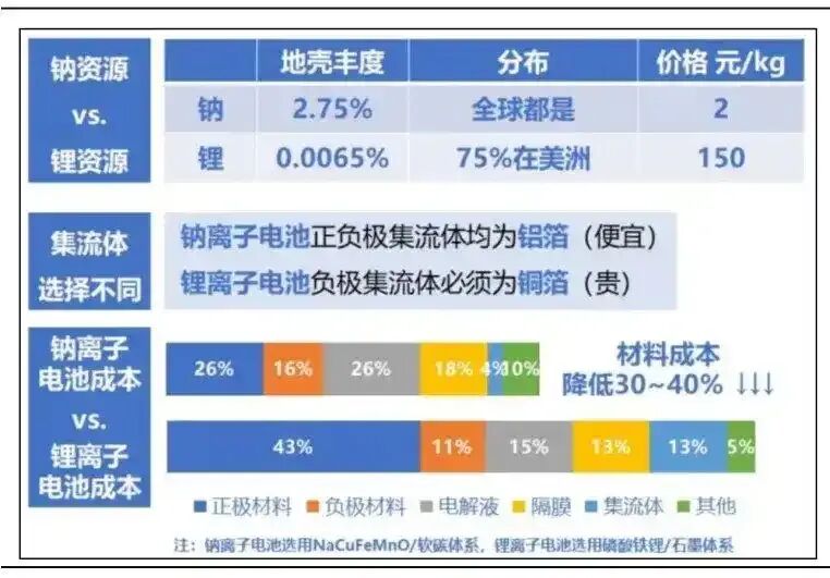 图/钠离子电池优势 来源/互联网 新能源观截图