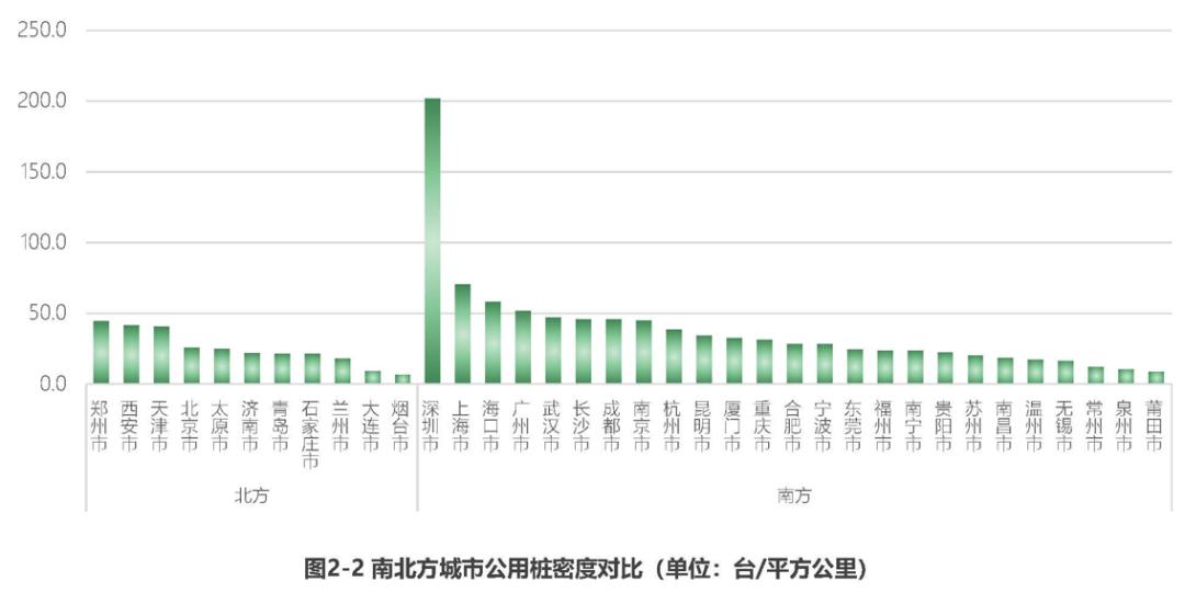 图/截至2024年部分南北方城市公用装密度对比 来源/互联网 新能源观截图