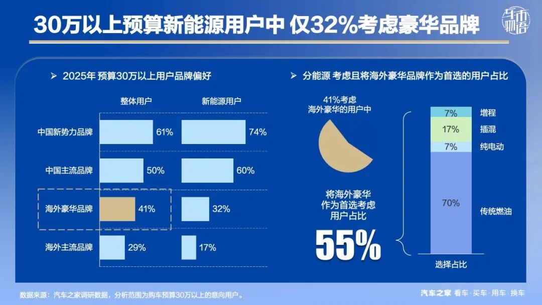 预算30万以上的新能源用户中,仅三成考虑购买豪华品牌