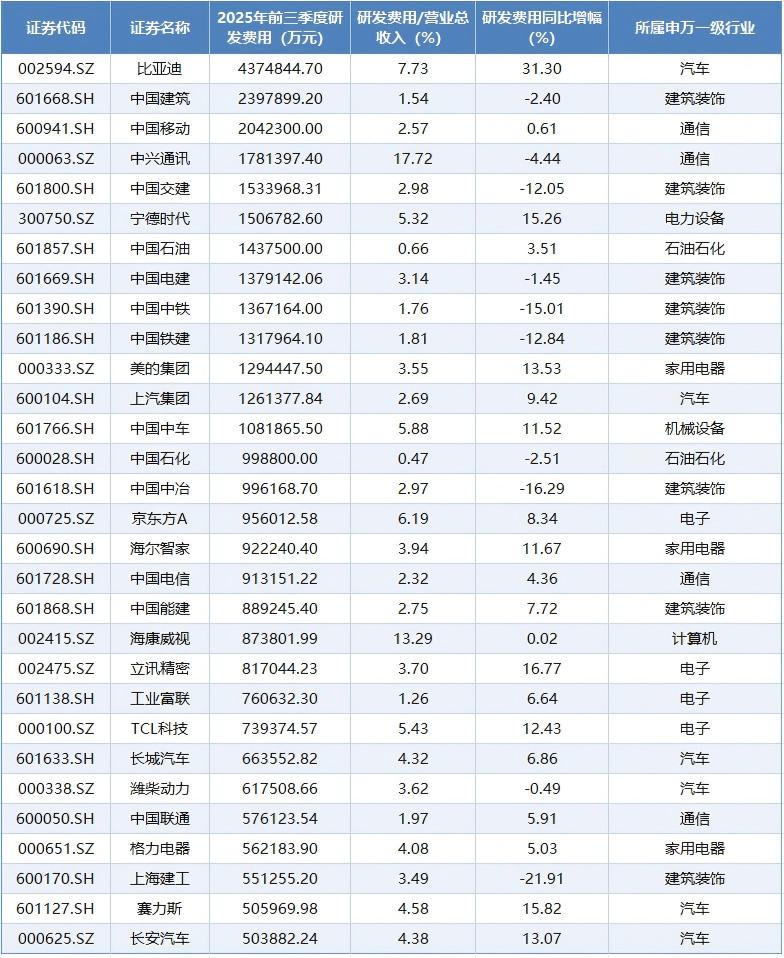 统计数据显示,2025年前三季度,A股上市公司合计研发投入1.16万亿元,同期规模连续3年超万亿,同比增长3.88%,增速较上半年提升0.23个百分点。
