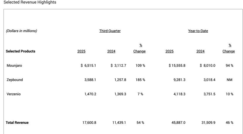 礼来2025年第三季度财报亮眼(图源:礼来公司财报)