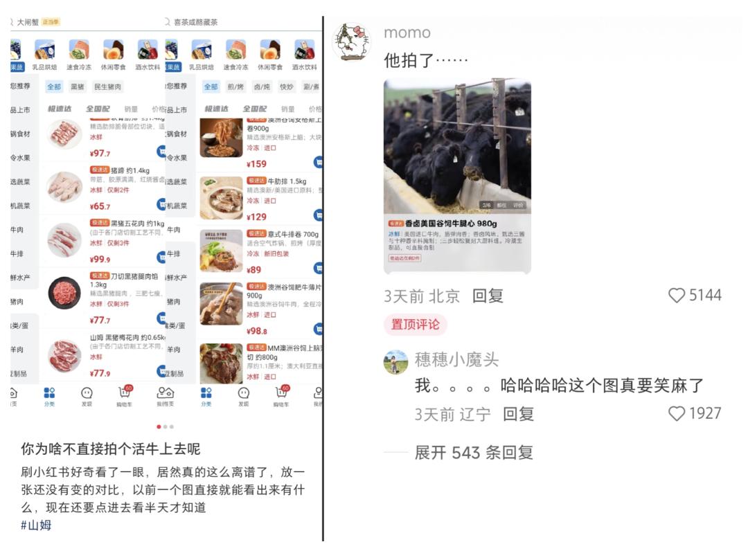 七月份“好丽友”事件的冲击波还没有散去,最近,山姆会员商店APP上的展示图又被爆出来有问题:有些商品展示图换成了加工好的食品照片乃至动物图片,荒诞程度就好比我要买新鲜五花肉,你给我上了个红烧肉的图,或者直接放了个二师兄。更离谱的是,山姆APP上之前甚至还有直接用AI图的。