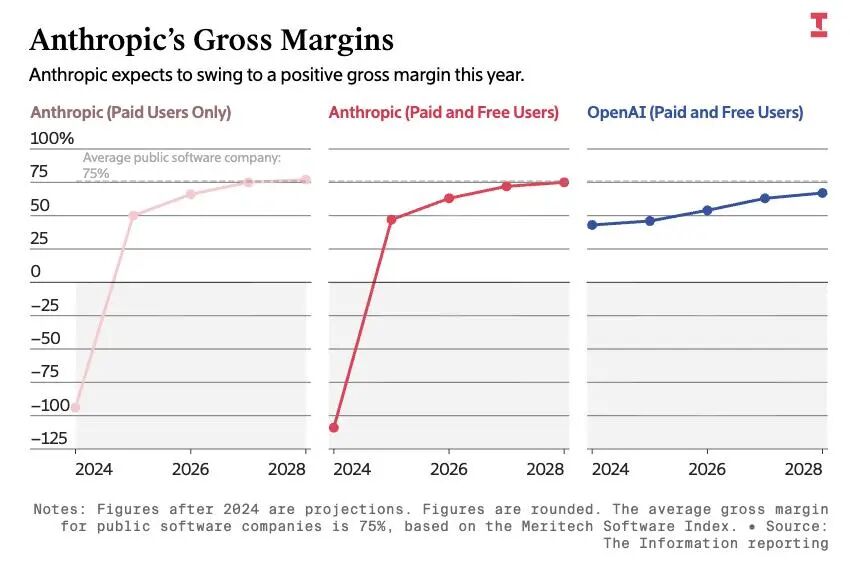 ▲Anthropic毛利率预计今年由负转正(图源:The Information)