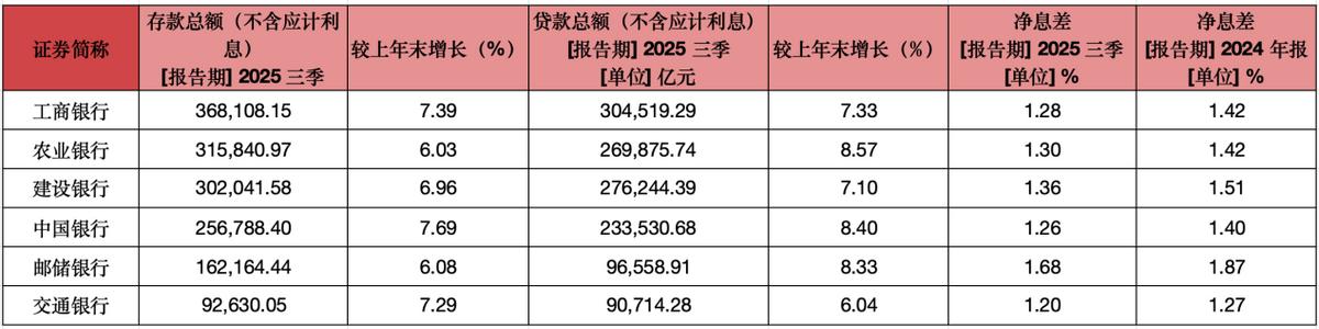 目前,六大国有银行2025年三季报已全部披露完毕。