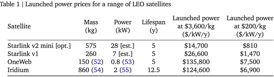 Google 在论文中计算过一笔账,如果 SpaceX 的发射成本能降到 $200/kg(预计 2035 年左右),则太空数据中心的单位功率成本,能与地面数据中心持平,约 $810/kW/年,与美国本土数据中心的 $570–3000/kW/年区间完全重叠。