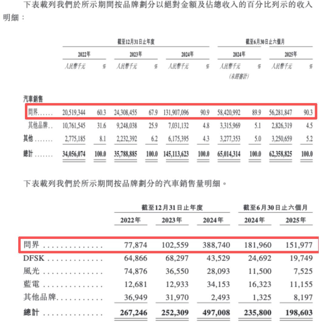 这一增长直接带动品牌收入结构发生根本性转变:问界在总营收中的占比从2022年的约六成,跃升至2024年的90%以上,2025年上半年仍维持在九成以上的高位,成为赛力斯绝对的核心业务引擎。
