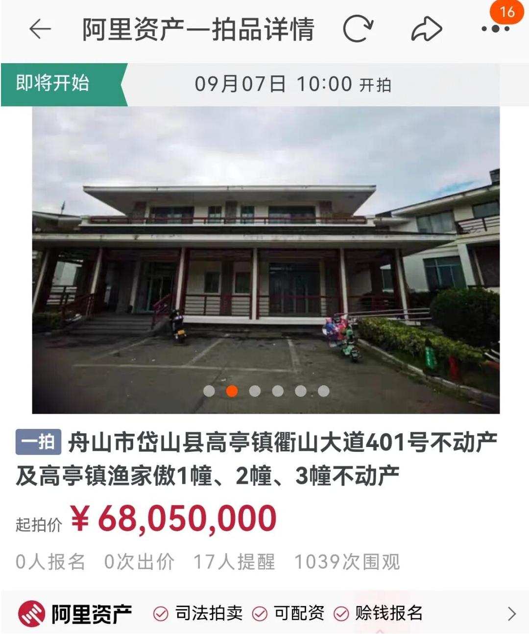 被称为舟山“国宾馆”的渔家傲山庄也在2023年多次挂牌拍卖。