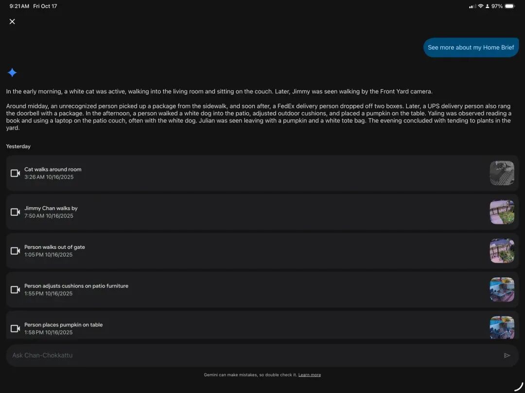 谷歌的新款家庭AI「Gemini」本该是智能家居的中枢:能识别人、包裹、甚至帮你自动开灯。