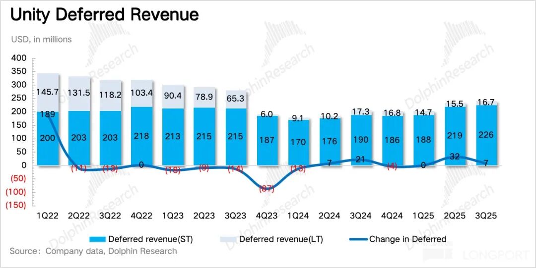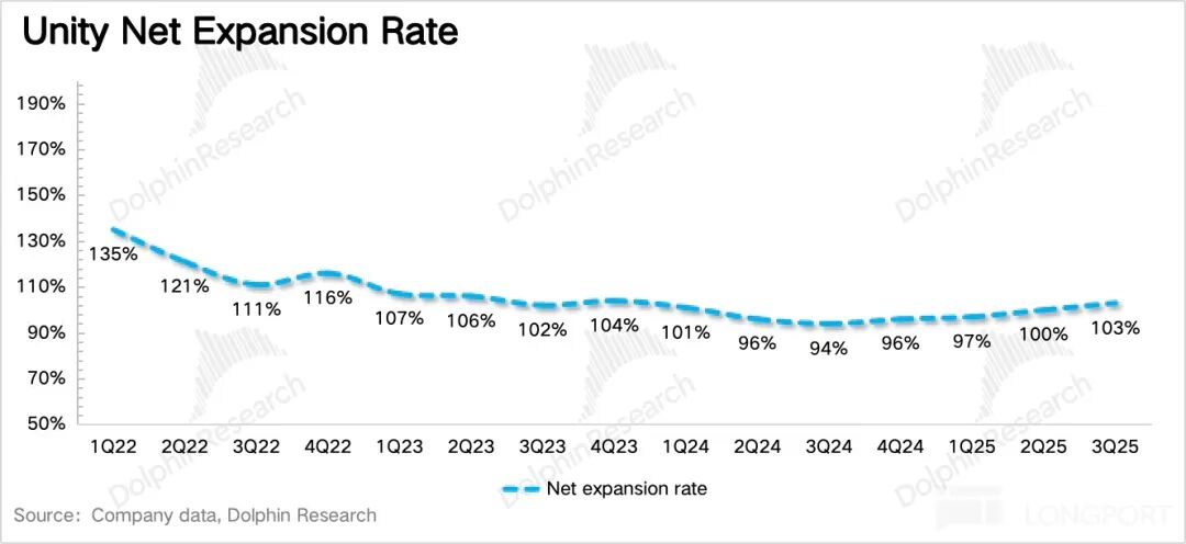 海豚君认为,这应该主要由去年 10 月推出的 Unity 6 推动。Unity 6 引擎功能做了很多丰富和升级,综合单价也更高,因此不看新客户,光老客户迁移就有利于推动引擎收入增加。从机构调研来看,目前已经有 50% 以上的老用户迁移到了 Unity 6,按照此前预期,应该还有 20-30% 有意向迁移的老用户仍在规划后续迁移。