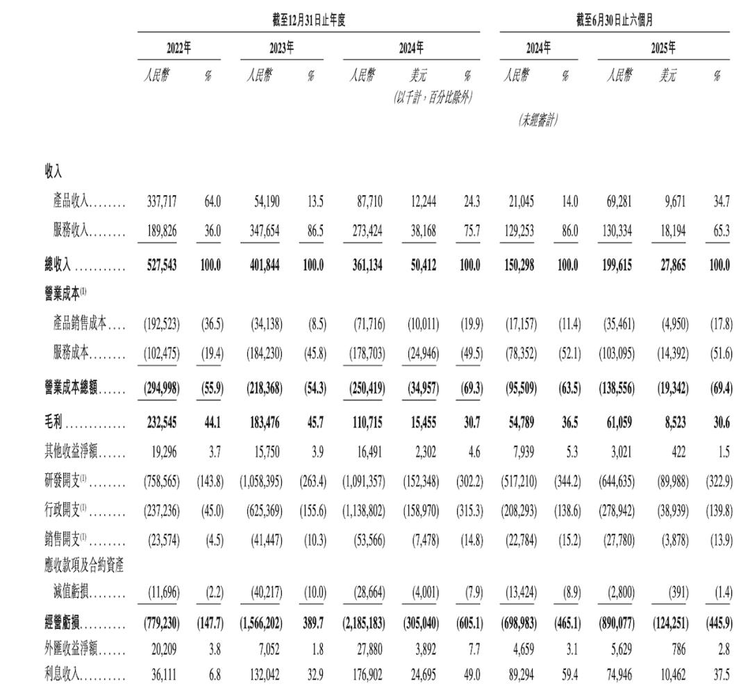 从2025年上半年的收入构成来看,其服务收入为1.3亿元人民币(同比增长0.76%),而产品销售收入为6900万元人民币(同比增长228.57%),显示出公司业务重心正向产品销售显著转移。